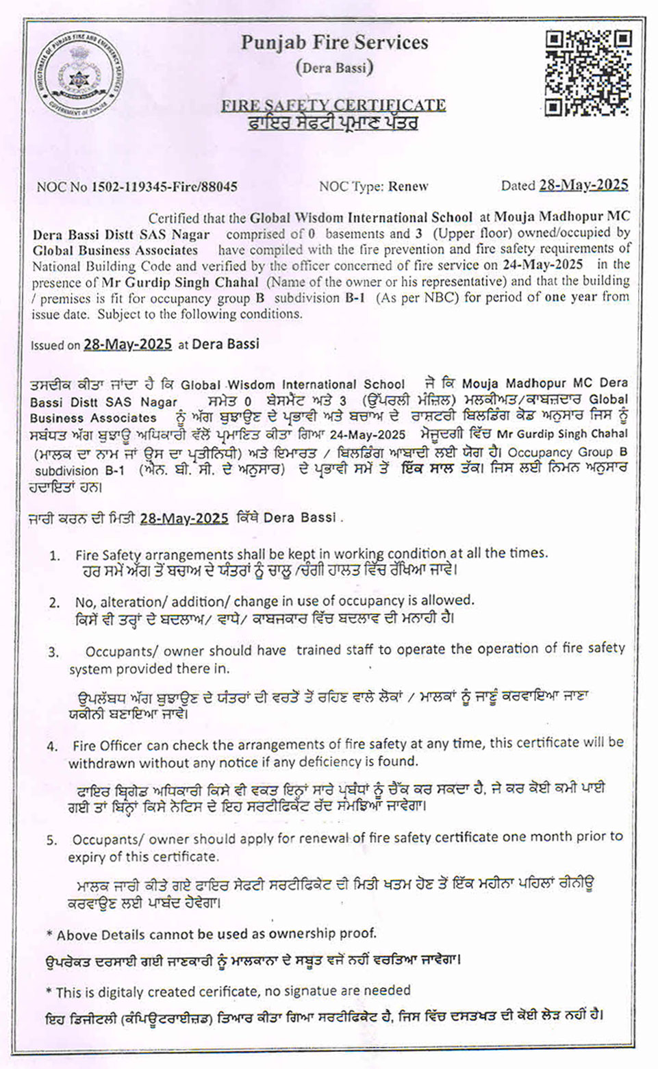 Fire Safety Certificate